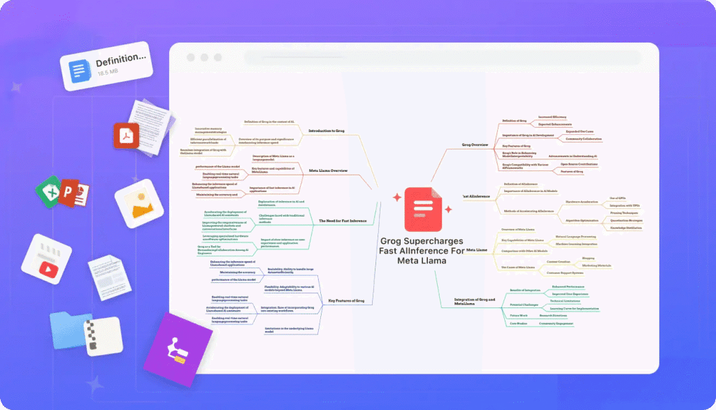 • يحوّل النصوص والصور وملفات PDF، وحتى فيديوهات يوتيوب إلى خرائط ذهنية في ثوانٍ.